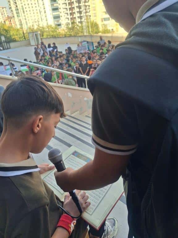 Filistin ve Gazze'de yaşanan acılara duyarsız kalmamak, insanlık onurunu savunmak adına ellerinde Filistin ve Türk bayrakları taşıyan öğrencilerimiz, çeşitli etkinliklerle Filistin ve Gazze'de yaşanan acılara dikkat çekerek Filistin halkına destek mesajları verdi.